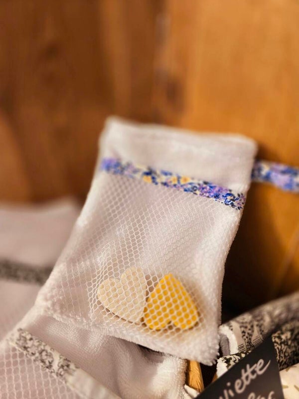 Glissez vos restes de savons ou un pain solide dans la poche filet